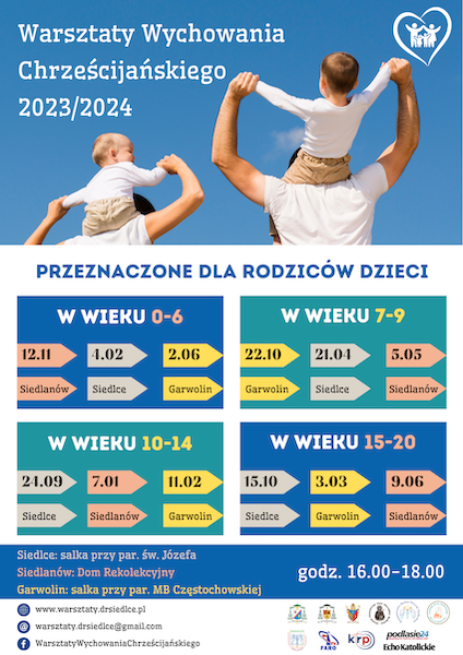 Wraz z nowym rokiem szkolnym i duszpastersko-katechetycznym w diecezji siedleckiej ruszają Warsztaty Wychowania Chrześcijańskiego. Tematyka warsztatów jest dedykowana rodzicom, którzy pragną w sposób świadomy z uwzględnieniem poszczególnych etapów rozwojowych, przekazywać wiarę swoim dzieciom.